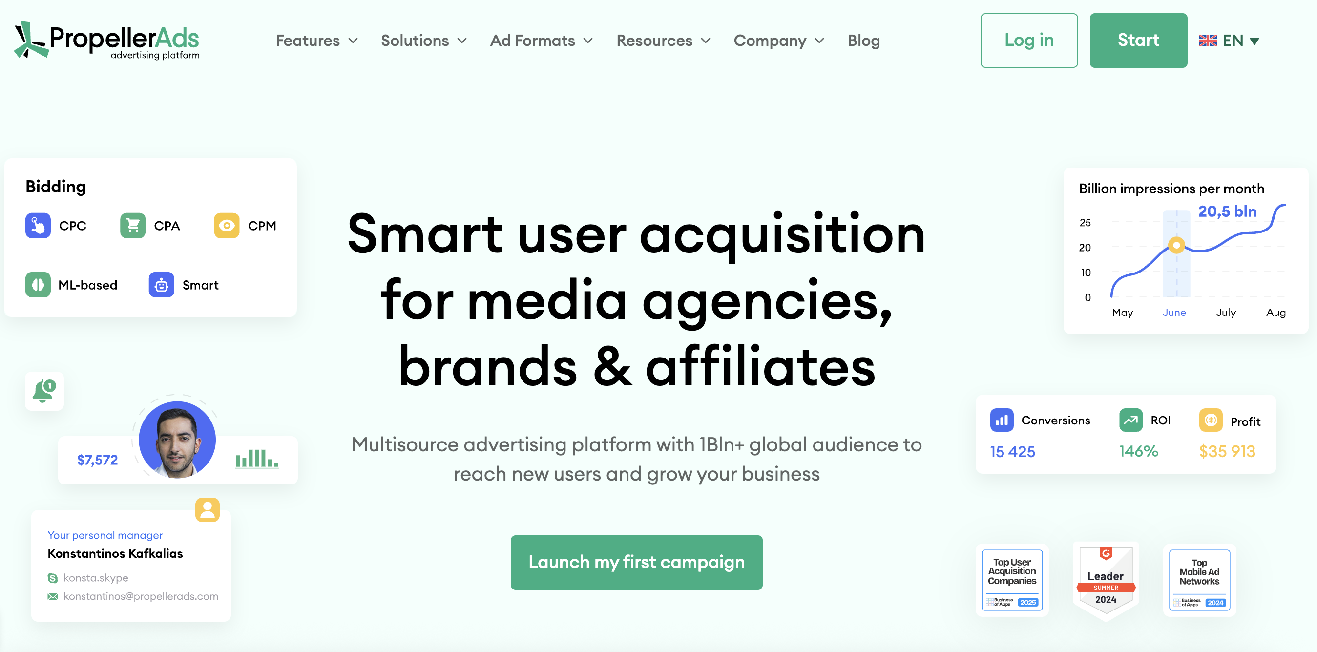 5. Rapid testing beyond walled gardens: PropellerAds for self-serve + CPA Goal multiformat campaign for testing and wide GEO expansion.