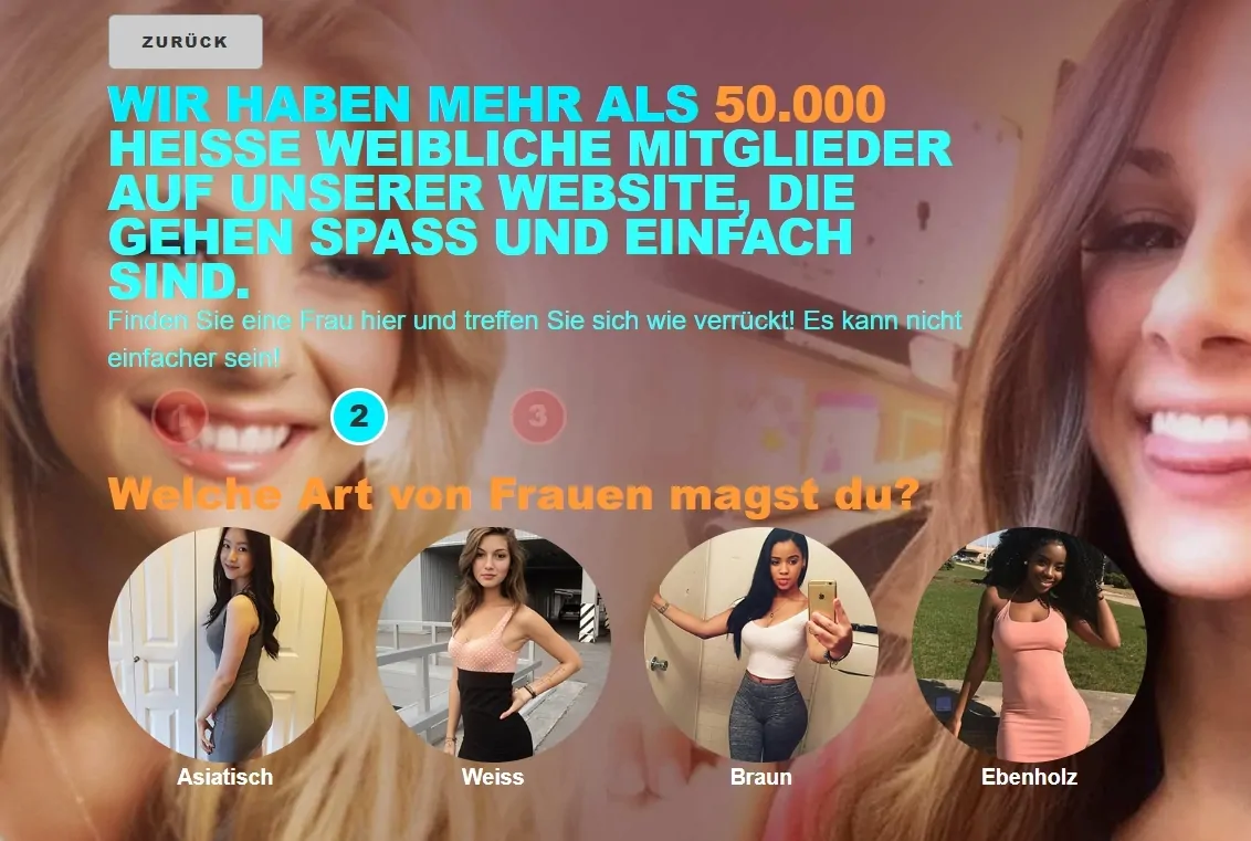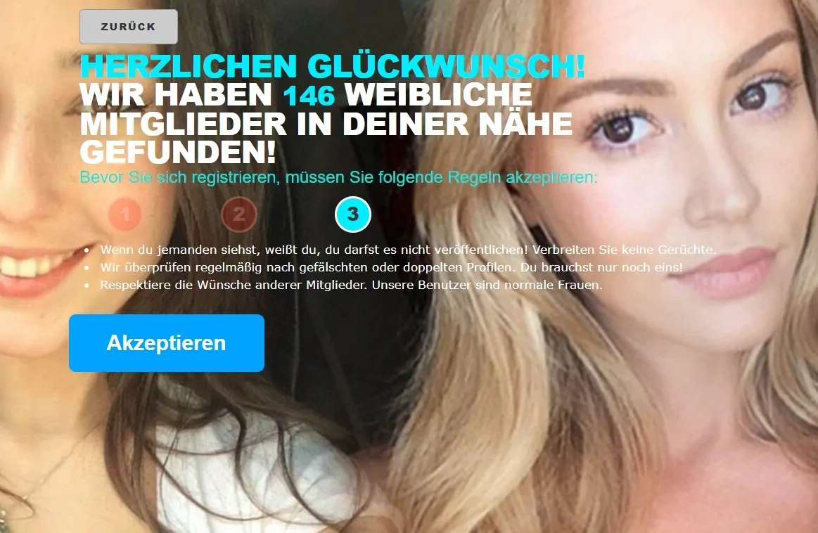 In the first two steps, a user chose the preferred type of women. In the third step, the user was told that there were some women he might want to meet.