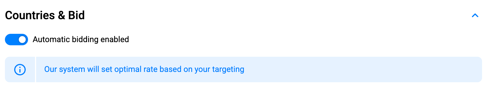 If you’re unsure what bid to start with, toggle Automatic Bidding, andthe platform will auto-suggest a starting CPM for your targeting.