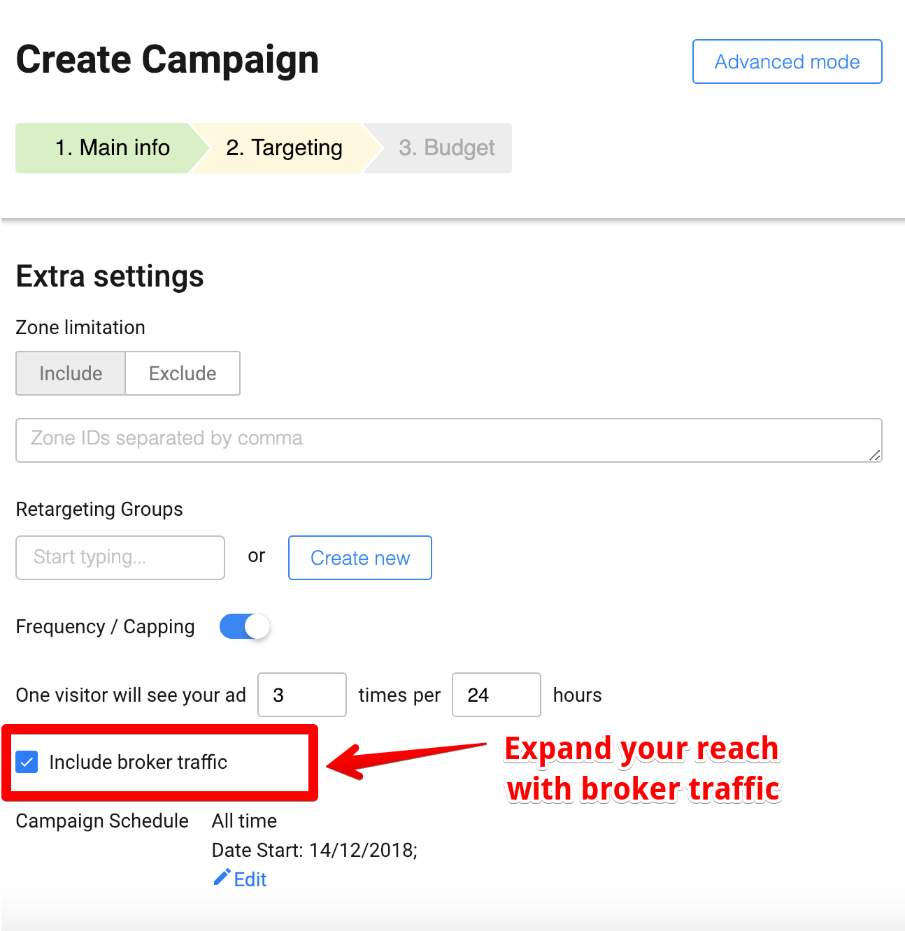 - You can expand your reach and include broker traffic as well. In case you are not familiar with the term, broker traffic is traffic we get from partner networks. This option is best suited for professional media buyers.