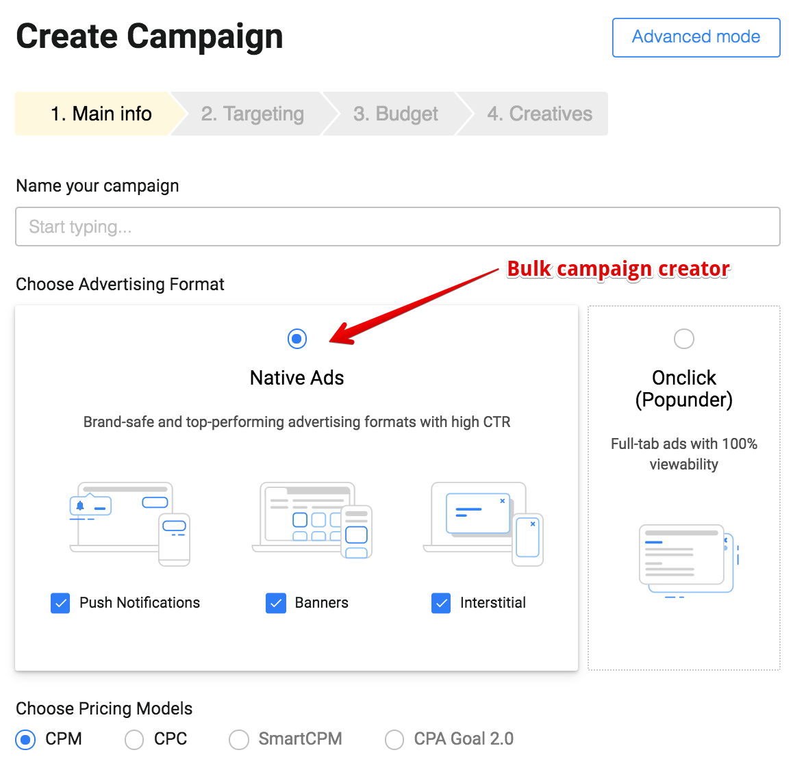 Another huge modification is a bulk campaign creator. What’s that? This novelty allows you to create several ad campaigns, featuring different native ad formats at once. Less manual work for you!