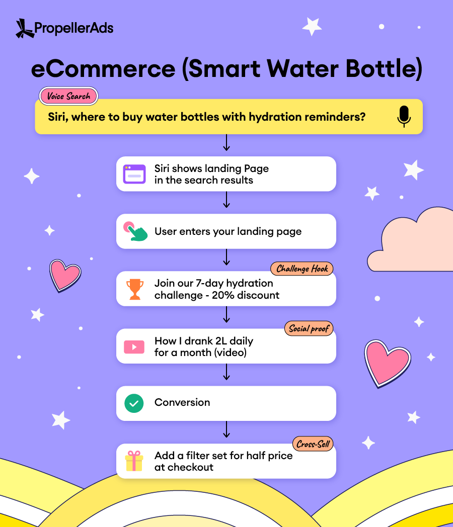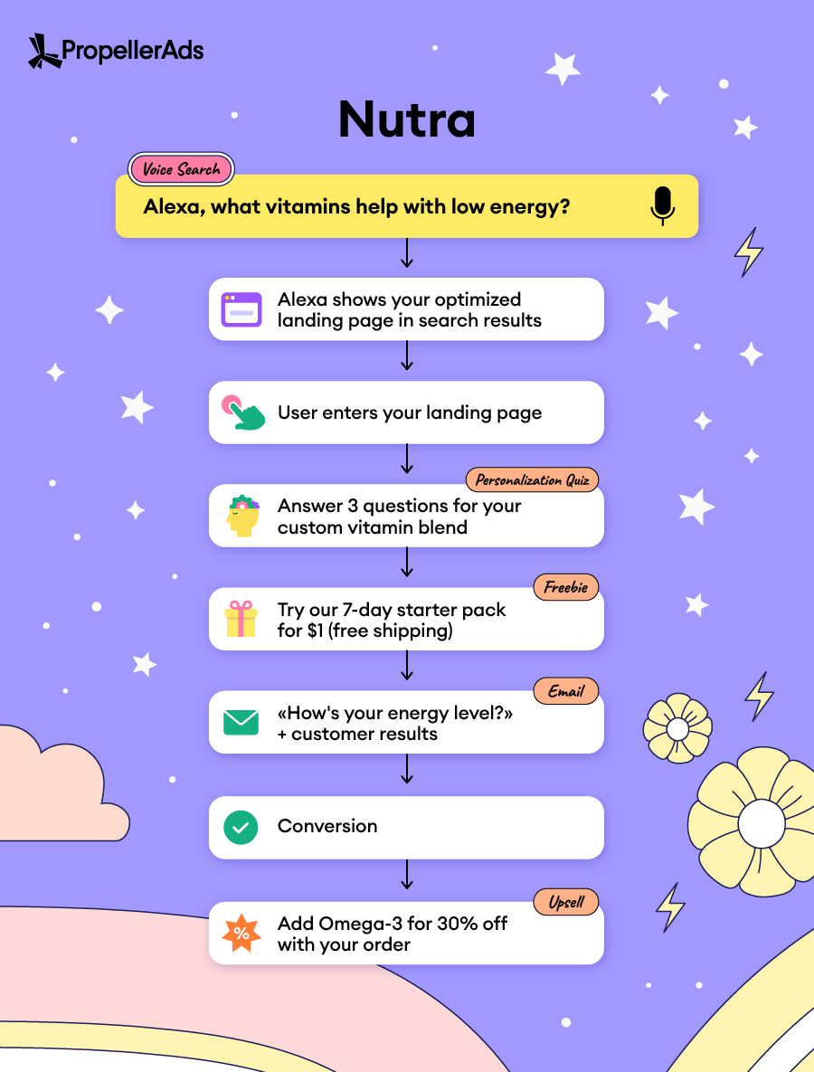 a user searches with voice → comes to your landing page → goes through the other funnel steps → converts