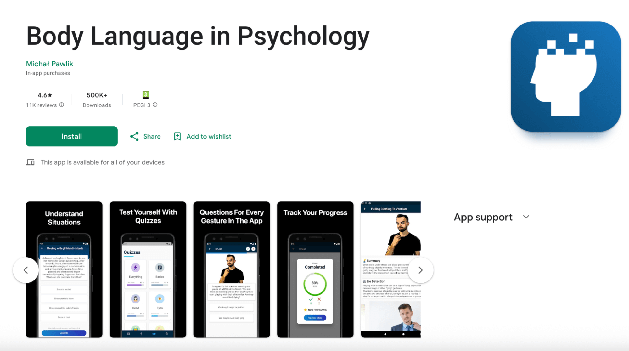 Psychologists explaining how to deal with a narcissist in your TikTok feed? Yes, they are popular, since mental wellness content has fully adapted to the short-form video revolution – with 10-minute lessons and tips that are informative, emotional, and easy to digest. Example – Body Language app with 100+ short videos, quizzes, and more: