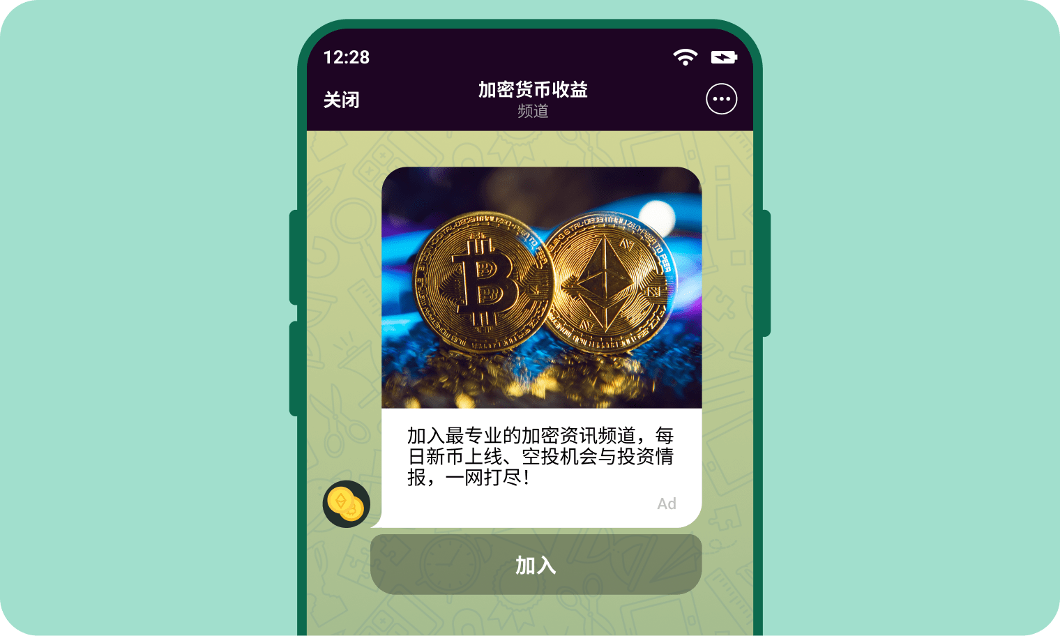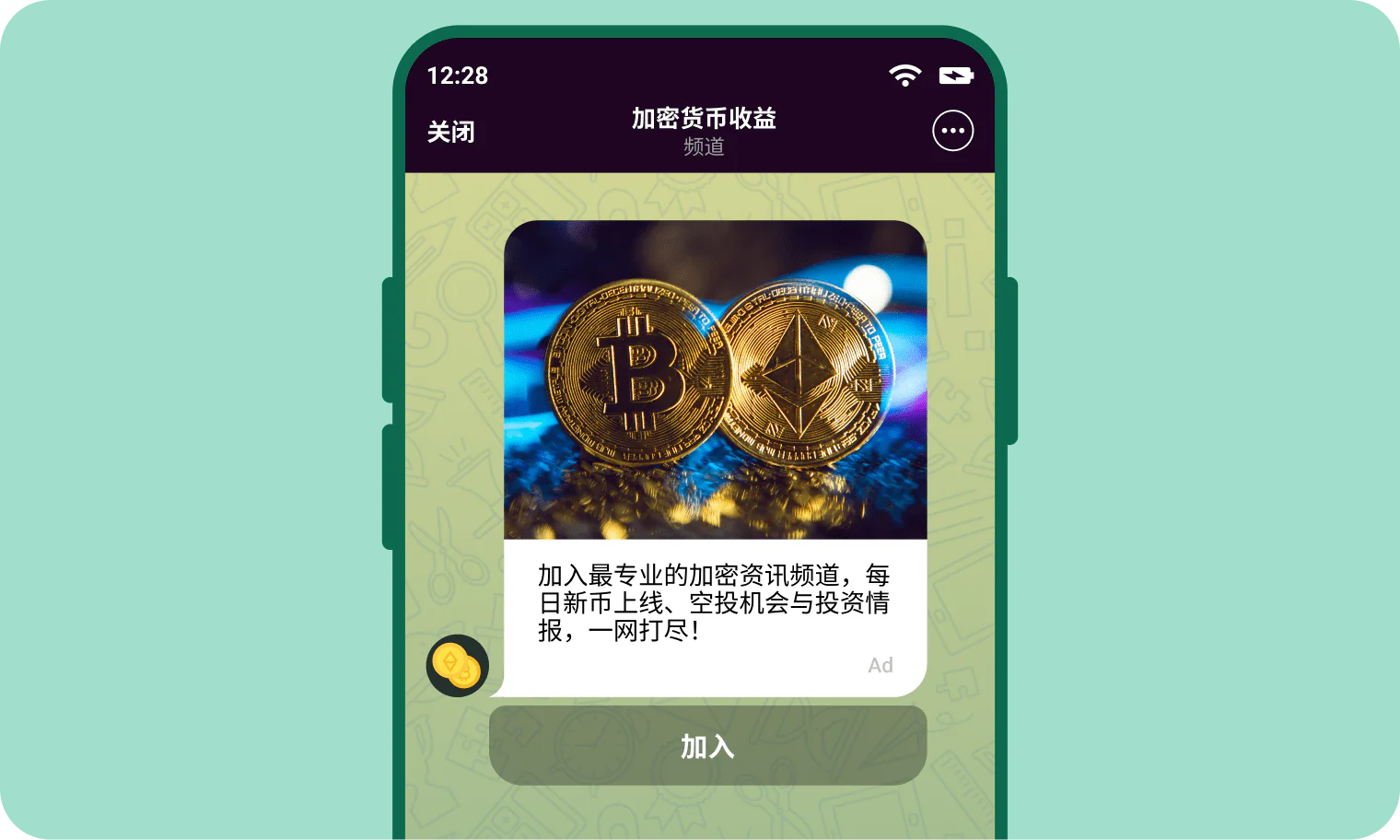 高参与度受众 测试数据显示:Telegram 用户的点击率(CTR)与转化率(CR)比传统展示广告高出 10–20 倍! 通过 CPA Goal 实现基于效果的优化 设置你的目标转化价格,我们的算法将以你的价格,仅选择最具性价比的投放并带来最高转化流量。 AI 生成素材 初次接触 Telegram 广告或想要在创建广告时节省时间吗?选择机器学习产生的自动素材,更快测试广告活动并自动化进行素材优化。 了解更多
